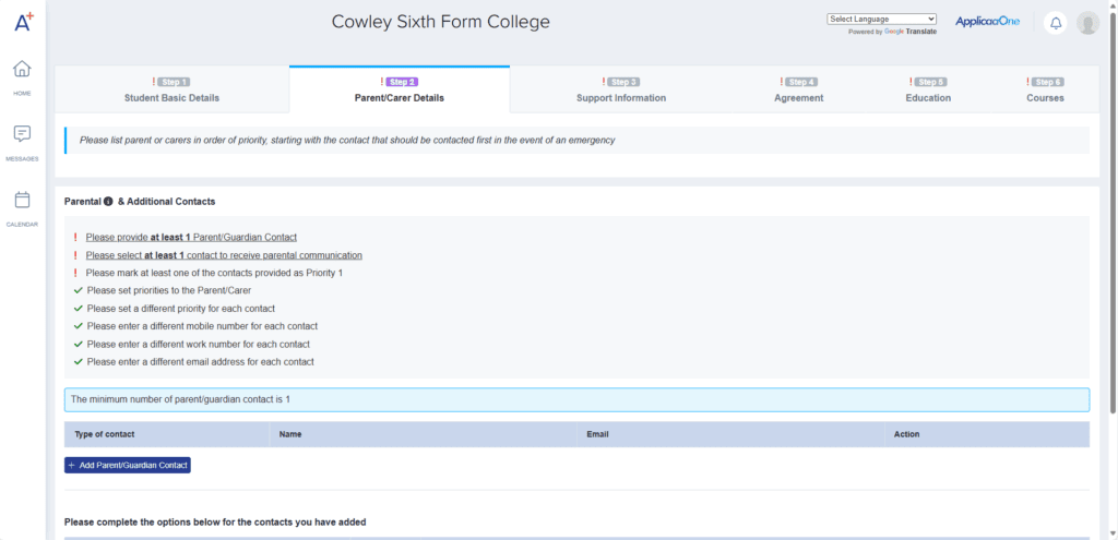Top Tip: Make sure all information is accurate – the college will use these details to contact your parents/carers.